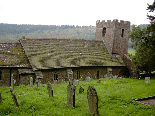 This little church is at Cwmyoy, down the valley from Llanthony. It was built on glacial moraine, which has slipped, so that despite repeated restorations it is quite warped. We heard about it at Kilpeck, where it was described as "twisted".