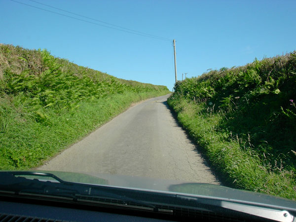 Frequently on this trip we drove on roads that ran between tall hedgerows, with no room for two cars to pass. When you meet someone, one or the other car has to back up to a wide spot, to let the other by.