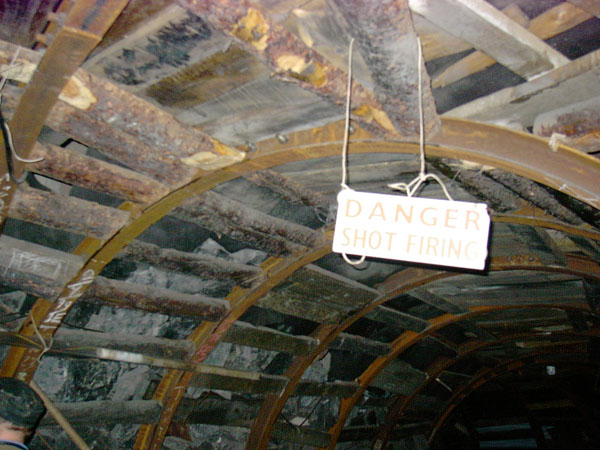 The guide did not say how long such a tunnel could be reinforced by such a ramshackle construction as this, but he did say the metal frames had a finite life. To get here, we took a cage down. In a real mine, the distance down might be 400 feet, but this is a simulated mine. I got the impression we were only one floor down, and might not even be underground. The trip back was via a simulated railcar ride. Never mind that it made no sense to descend vertically 400 feet in an elevator and to return on a railcar that travelled horizontally. The point was to entertain us.