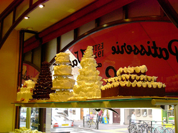 It's appropriate to end this slide show with something about eating, since the results are still with us. We gained about 8 pounds each, and have been dieting since we got back. This display of cakes was at Patisserie Valerie, on Marylebone High Street, a couple of blocks from our hotel. We ate breakfast there most mornings.